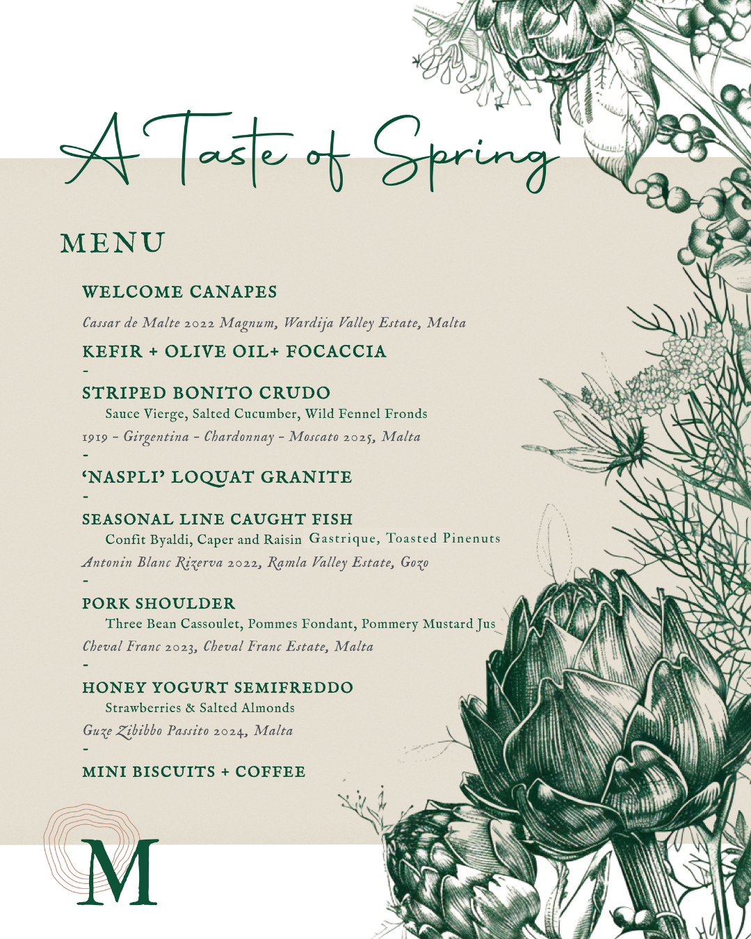 Rooted in our commitment to sustainability and local sourcing, this experience is a celebration of Maltese ingredients and flavours at their peak — showcasing the best of the season through a thoughtful, produce-driven menu.
